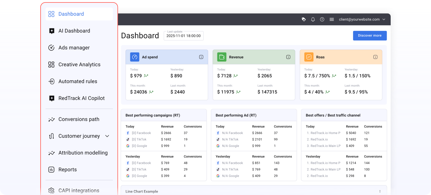 بدل أن تعمل بشكل عشوائي، تعطيك RedTrack رؤية حقيقية مبنية على بيانات دقيقة.